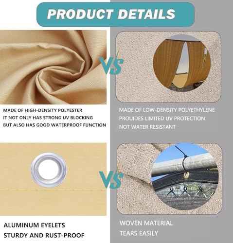 - Hohe Qualität: Sonnensegel aus 100 % hochwertigem und dichtem Polyestergewebe, kann effektiv 95 % UV-Schutz und 90 % Schattenrate erreichen. Kann die Temperatur drastisch senken und einen kühlen, komfortablen Außenbereich schaffen. dieses Outdoor-Sonnensegel ist UV-geschützt, wasserdicht, reißfest und kann erreichen.