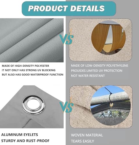 - Hohe Qualität: Sonnensegel aus 100 % hochwertigem und dichtem Polyestergewebe, kann effektiv 95 % UV-Schutz und 90 % Schattenrate erreichen. Kann die Temperatur drastisch senken und einen kühlen, komfortablen Außenbereich schaffen. dieses Outdoor-Sonnensegel ist UV-geschützt, wasserdicht, reißfest und kann erreichen.