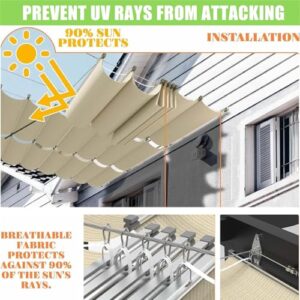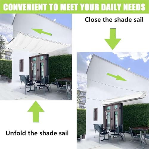 - UV-SCHUTZ – Die einziehbaren Wellen-Sonnensegel von BLGVGKLPNT bieten 95 % UV-Schutz und 90 % Schatten für Ihren Garten und schaffen so einen kühleren Raum. Sie sind so konzipiert, dass sie eine ruhige und komfortable Außenumgebung schaffen, die Sie dazu einlädt, sich zu entspannen und die Natur ohne Sorgen zu genießen.