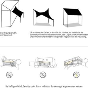 - 🌈 Wasserdicht - Die Oberfläche dieses Segelzeltes wird wie Lotusblätter sein, wenn es auf Wasser trifft. Das Wasser kondensiert zu Tröpfchen und rollt auf der Oberfläche des Stoffes weg, anstatt durch den Stoff zu dringen. Daher kann es effektiv die Rolle des wasserdichten Segeldaches spielen, wird zu einer wasserdichten Pergola-Abdeckung, Gartenüberdachung, Balkonüberdachung und so weiter.