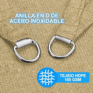 - [Einfach zu installieren] Alle unsere Sonnensegel werden mit Seilen geliefert. Fädeln Sie das Seil einfach durch den D-Ring aus Edelstahl und befestigen Sie es an einem Zaun, Pfosten, Stütze, Baum oder einer Wand. Sie können mehrere Sonnensegel in unterschiedlichen Farben und Größen installieren, um eine größere Schattenfläche zu erhalten