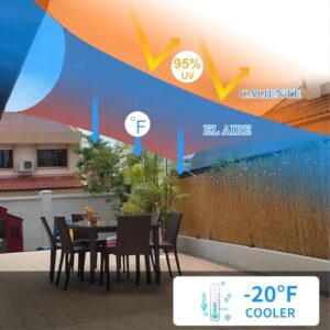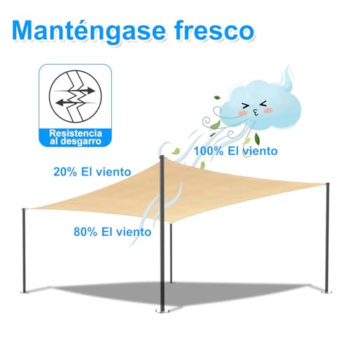 - [Atmungsaktiv und feuchtigkeitsdurchlässig] Atmungsaktives Gewebe lässt kühle Luft durch, sodass Sie die Brise genießen und kühl bleiben können; Um ein Durchhängen und Wasseransammlungen an regnerischen Tagen zu verhindern, ist das Sonnensegel regendurchlässig. Für beste Ergebnisse empfehlen wir die Installation in einem Winkel zwischen 20 und 40 Grad