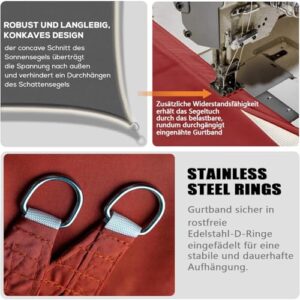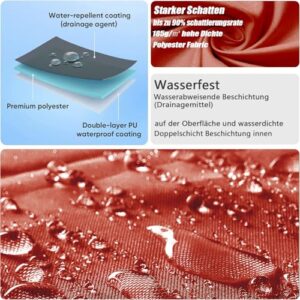 - WASSER- UND REGENFEST: Das NINGOU Sonnensegel ist mit einer wasserdichten PU Beschichtung versehen. Die Nähte des Stoffes wurden heiß gebügelt, um undichte Nähte zu vermeiden. Wasserdichtigkeit: 2000mm Wasserdruck.