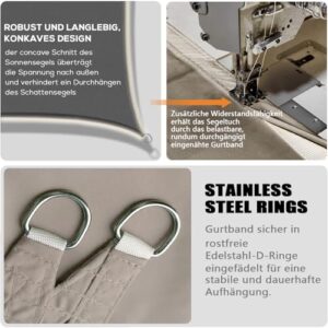 - WASSER- UND REGENFEST: Das NINGOU Sonnensegel ist mit einer wasserdichten PU Beschichtung versehen. Die Nähte des Stoffes wurden huiheseß gebügelt, um undichte Nähte zu vermeiden. Wasserdichtigkeit: 2000mm Wasserdruck.