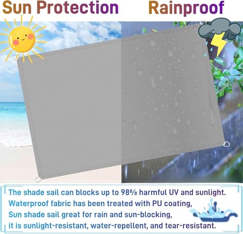 - HOCHWERTIGES MATERIAL: Das Sonnensegel von besteht aus hochgradig wasserdichtem Polyester + Oxford-Stoff (180 g/m²), der sich leicht falten lässt, reißfest,leicht und atmungsaktiv ist. Es blockiert effektiv bis zu 95 % der UV-Strahlen und 90 % Schattenrate erreichen.dieses Outdoor-Sonnensegel ist UV-geschützt,wasserdicht, reißfest und kann erreichen