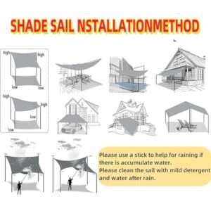 - WASSERDICHTES SONNENSEGEL: Die Oberfläche dieses Sonnensegel wird wie Lotusblätter aussehen,wenn es auf Wasser trifft. Das Wasser kondensiert zu Tröpfchen und rollt an der Stoffoberfläche ab,anstatt durch den Stoff zu dringen.Schlagen Sie einen Installationswinkel von 20–40 Grad vor, um eine maximale Spannung zu erreichen und auch Regen abfließen zu lassen