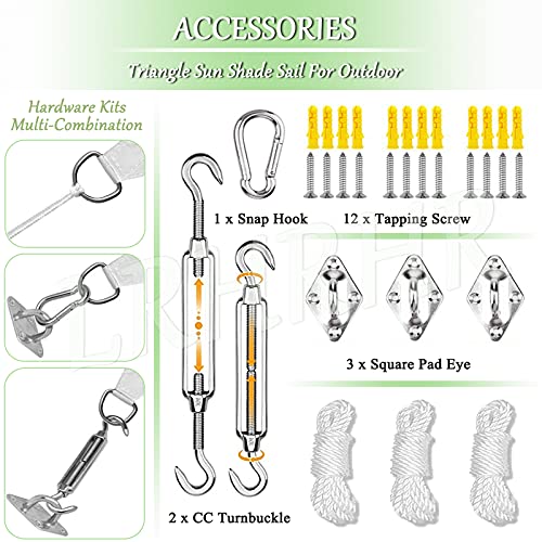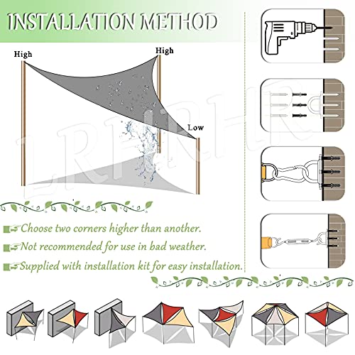 - ✎✎Einfach zu installieren: Wir bieten Ihnen langlebige Seile und die Befestigungssets kostenlos, um das Sonnensegel bequem zu befestigen. Bitte in einem Winkel installieren, um eine maximale Drainage zu gewährleisten. Sie können es überall verwenden, wo Sie es brauchen; einfach zu verstauen, nimmt nicht zu viel Platz ein, sehr praktisch für Transport oder Lagerung.