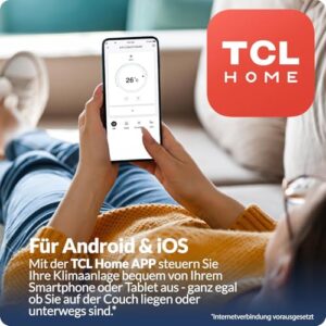 - ✅𝐒𝐦𝐚𝐫𝐭-𝐇𝐨𝐦𝐞 𝐈𝐧𝐭𝐞𝐠𝐫𝐚𝐭𝐢𝐨𝐧 𝐦ö𝐠𝐥𝐢𝐜𝐡: Behalten Sie Ihr Raumklima immer im Griff – egal ob von der Couch oder unterwegs. Steuern Sie sämtliche Funktionen klassisch per Fernbedienung oder bequem über die TCL Home App direkt vom Smartphone oder Tablet aus. Es besteht eine Kompatibilität mit den Sprachassistenten von Alexa und Google.