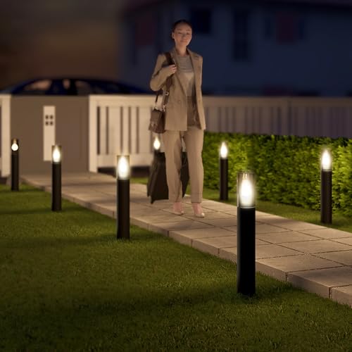 - MINIMALISTISCHE DESIGN – 4x Gehwegbeleuchtung in schwarz mit smoky dunkelgrauem Kunststoffglas für eine stilvolle Lichtstreuung