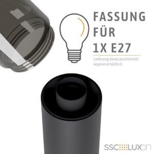 - Lieferung ohne Leuchtmittel - Maße: Ø 75 mm x Höhe 500 mm - Material: Edelstahl, Kunststoff - Farbe: matt schwarz (pulverbeschichtet)