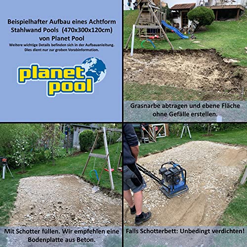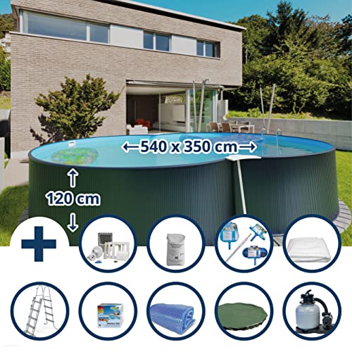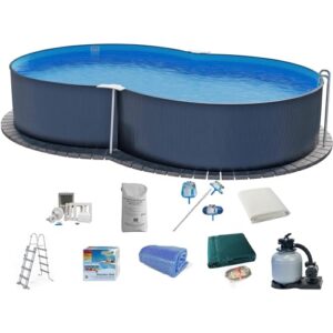 Stahlwandpool Set (10-teilig) hoch achtform 540x350x120 cm, Stahl 0,4 mm anthrazit Folie 0,4 mm blau