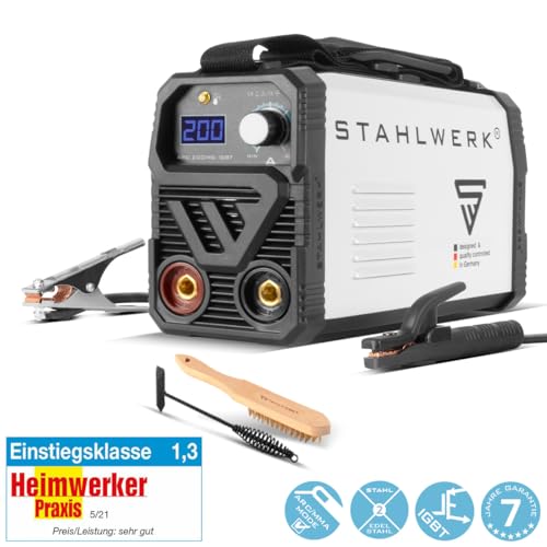 - PROFESSIONELLER MMA INVERTER – Das Elektrodenschweißgerät liefert echte 200 Ampere Leistung bei hoher Effizienz. Perfekt geeignet für präzise Schweißarbeiten an Stahl, Edelstahl und Guss unter Verwendung gängiger Stabelektroden.