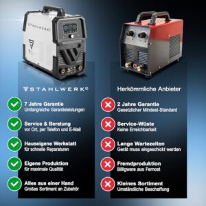 - PRODUKTE LIVE ERLEBEN – Testen, Probeschweißen & Probeschneiden direkt vor Ort – überzeugen Sie sich selbst von der hohen STAHLWERK Qualität. Zusätzlich profitieren Sie von 7 Jahren Garantie gemäß § 6 unserer Garantiebedingungen (Details unter Verkäufername > AGB & Hilfe).