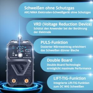 - Pulsfunktion für saubere Schweißnähte - Umfangreiche Pulssteuerung im MMA- und Lift-TIG-Modus reduziert gezielt Hitzeverzug und Materialdurchbrennen – für präzise und verzugsarme Schweißergebnisse.