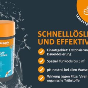 - Hygienisch sauberes Wasser mit Chlorwirkung: Die schnelllöslichen 5 g Tabs sorgen zuverlässig für klare Wasserqualität. Sie desinfizieren effektiv und bekämpfen Bakterien, Viren, Algen und Pilze.