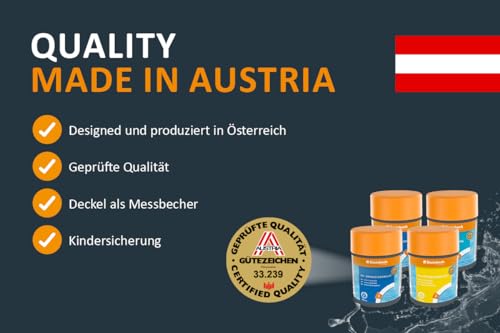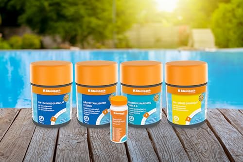 - Gleichgewicht von pH-Wert & Wasserhärte: Mit pH-Minus, pH-Plus, FreshUp Sparkling Tabs und Härtestabilisator wird das Wasser optimal eingestellt. So bleibt es hautfreundlich, materialschonend und kalkfrei.
