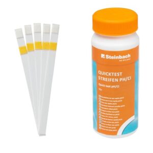 - Teststreifen zur Kontrolle: Mit den 50 beiliegenden Teststreifen lässt sich der pH-Wert und der Chlorgehalt im Handumdrehen prüfen. So bleibt das Poolwasser dauerhaft im Gleichgewicht.