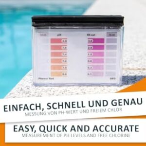 - TESTKIT FÜR pH-WERT UND FREIES CHLOR: Dieses umfassende Set ermöglicht eine genaue, schnelle und einfache Messung der Wasserqualität in Ihrem Pool oder Whirlpool.