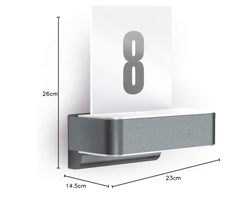 - MODERNE HAUSNUMMERNLEUCHTE - Das smarte Up- & Downlight mit einer Helligkeit von 679 lm und 9,8 W Verbrauch verbreitet nach einem sanften Softlichtstart warmweißes Licht und eignet sich dank individuell wählbarer Hausnummer ideal für den Hauseingang