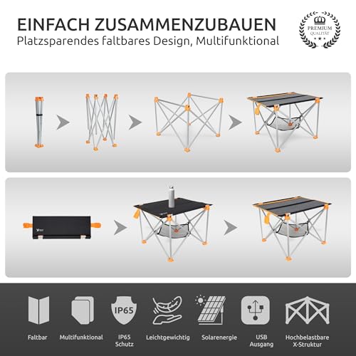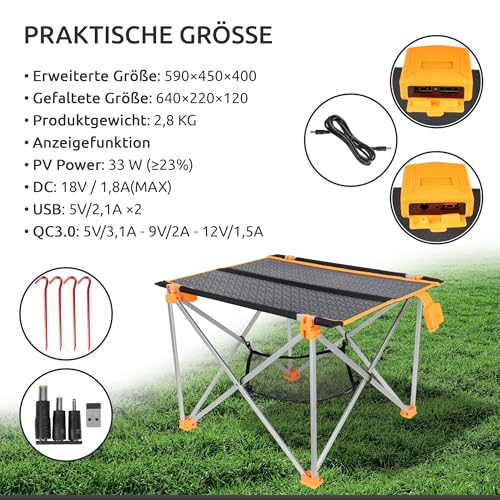 - Solarpanel und Klapptisch in Einem - ein faltbares Solarpanel 33W und ein ultraleichter Campingtisch als ultimative mobile Solaranlage