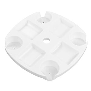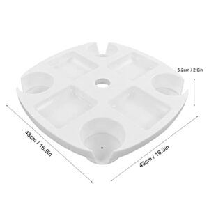 - Bewahren Sie Ihre Snacks und Getränke in diesem weißen, runden Schirmtablett auf, das Sand und Verschüttungen widersteht. Perfekt für Strandausflüge oder Picknicks, sorgt dafür, dass Ihre Lebensmittel sauber und vor Schmutz geschützt bleiben, während Sie sich unter der Sonne entspannen. Genießen Sie Ihre Outdoor-Erlebnisse mit diesem unverzichtbaren Accessoire, das Versammlungen angenehmer und stressfreier macht.