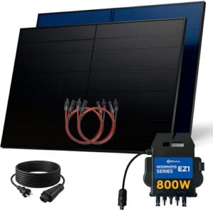 - ⭐⭐⭐⭐⭐ HOHE EFFIZIENZ: Mit einer Modulleistung von 1000 Watt und zusätzlicher bifazialer Energieausbeute, sowie einer hohen Effizienz, bietet es selbst bei schwachen Lichtverhältnissen einen hohen Energieertrag. Ausgangsleistung 800 Watt.