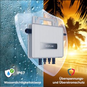 - ⭐⭐⭐⭐⭐ STABILITÄT, SCHUTZ: Die Front aus gehärtetem Glas mit Antireflexbeschichtung und der robuste Aluminiumrahmen sorgen für beste Stabilität des genehmigungsfreien Balkonkraftwerks, auch bei starkem Wind, sowie bei schweren Schneelasten steht die Mini PV Solaranlage sicher. Der Netz- und Anlagenschutz sorgt im Fehlerfall, z.B. bei Netzabschaltung oder Netztrennung, für die sofortige Abschaltung des Wechselrichters und somit des ganzen Balkonkraftwerks.