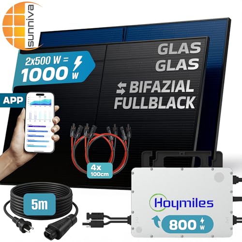- ⭐⭐⭐⭐⭐ HOHE EFFIZIENZ: Mit einer Modulleistung von 1000 Watt und zusätzlicher bifazialer Energieausbeute, sowie einer hohen Effizienz, bietet es selbst bei schwachen Lichtverhältnissen einen hohen Energieertrag. Ausgangsleistung 800 Watt.