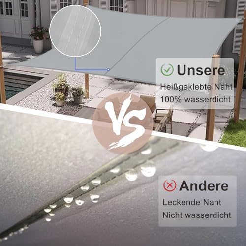 - ✔【99.9 % wasserdicht】: Die Sonnensegel besteht aus 170g/m² schwerem 100% Polyester. Die hochwertige Doppelschicht-Struktur mit PU-Beschichtung bietet effektiven Wasserdicht, hält einem Wasserdruck von 400 kPa stand, ist schimmel- und schmutzresistent sowie alterungs- und verblassungsbeständig.