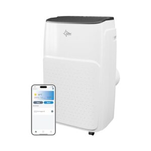 - ❄️ TECHNISCHE DETAILS: 3 in 1 (Kühlen – Entfeuchten - Ventilieren) | Kühlleistung 12.000 BTU /h | 1337 Watt | 240 Volt | Energieeffizienzklasse: A | Produktabmessungen BxHxT: 45 x 76,3 x 36,4 cm | 30 Kilogramm | Ein-/Ausschalttimer (1-24 Stunden) | 3 Ventilationsstufen mit max. 400 m3/h Luftumwälzung | Indoor-Nutzung | Manuelle Temperatureinstellung (16-32 °C) | Farbe: weiß | Kabellänge 1,8 m | Schalldruckpegel: 54 dB(A) | Schallleistungspegel: 65 dB(A)