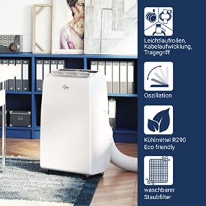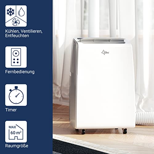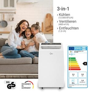 - ❄️ TECHNISCHE DETAILS : 3 in 1 (Kühlen - Entfeuchten - Ventilieren) | Kühlleistung 12.000 BTU /h | 240 Volt | Energieeffizienzklasse: A | Produktabmessungen BxHxT: 42,5 x 74,5 x 36 cm | 32,9 Kilogramm | Ein-/Ausschalttimer (24 Stunden) | 3 Ventilationsstufen mit max. 400 m3/h Luftumwälzung | Indoor-Nutzung | Manuelle Temperatureinstellung (16-30 °C) | Farbe: weiß | Kabellänge 2,0 m | Schalldruckpegel: 52 dB(A) | Schallleistungspegel: 65 dB(A)