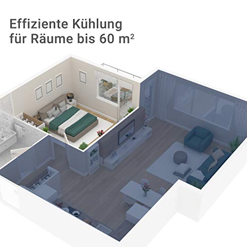 - ❄️ EFFIZIENTE KÜHLUNG : Der kleine Monoblock Aircooler sorgt für eine angenehme Abkühlung bei hohen Temperaturen für Räume bis zu 60 m2 bzw. 130 m3. Mithilfe von drei Ventilationsstufen und maximaler Luftumwälzung wird die kühle Luft gleichmäßig im Zimmer verteilt. Der Sommer kann kommen!