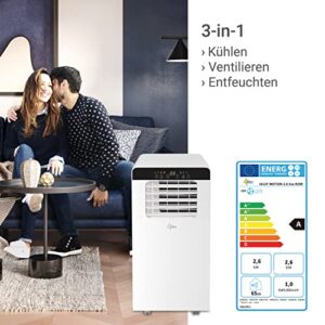 - MULTITALENT : Motion 2.6 Eco Klimaanlage kann kühlen, entfeuchten und ventilieren. Das 3 in1 Gerät ist flexibel einsetzbar und optimiert wunschgetreu das Klima – ob im Büroraum oder zuhause. Kompakt und neutral in Weiß gehalten fügt es sich harmonisch ins Schlafzimmer und jeden weiteren Raum im Haus ein. Willkommen Wohlfühlklima!