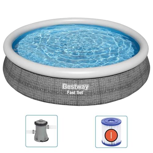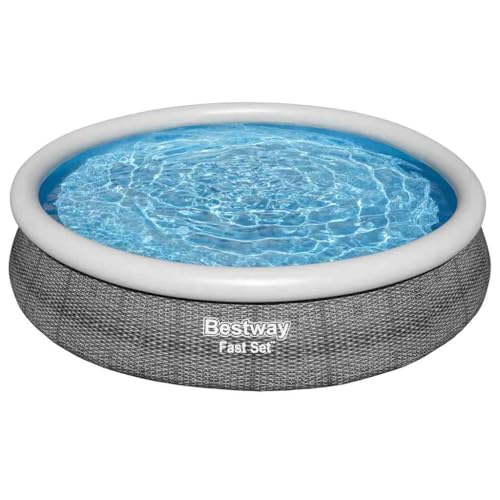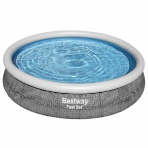 - Die Aufbauanleitung ermöglicht einen schnellen Aufbau in etwa 10 Minuten auf einer ebenen Fläche, indem der obere Ring aufgeblasen und der Pool mit Wasser gefüllt wird.
