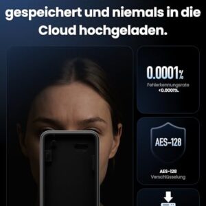 - Datensicherheitsschutz Ausgestattet mit banktauglicher 3D-Strukturlicht-Gesichtserkennung und AES-128-Verschlüsselung ist Ihre Privatsphäre vollständig geschützt. Alle Gesichts- und Handvenendaten werden lokal gespeichert und niemals in die Cloud hochgeladen – für maximale Sicherheit und ein beruhigendes Gefühl.