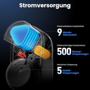 - Dreifacher Stromschutz für eine längere Akkulaufzeit Lock Ultra verfügt über einen verbesserten, integrierten wiederaufladbaren Hauptakku sowie einen zusätzlichen Notfallakku für den durchgehenden Betrieb. Während der Hauptakku geladen wird, übernimmt der Notfallakku automatisch, damit das Schloss weiterhin funktionsfähig bleibt. Selbst wenn beide Akkus schwach sind, ermöglicht die Mikrostrom-Entriegelung durch minimale Stromaufnahme einen Notzugang.