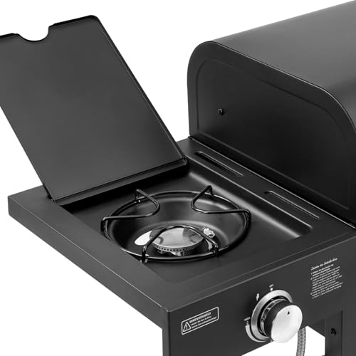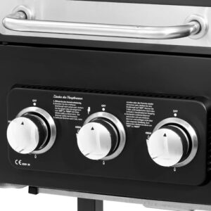 - Gasgrill:3x Hauptbrenner aus Edelstahl mit gleichmäßiger Hitzeverteilung - 1x Seitenkocher - Piezozündung - im mittlerem Drehknopf - Warmhalterost ca. 35 x 20 cm (BxL) - Warmhalterost mit hitzebeständiger Emaille