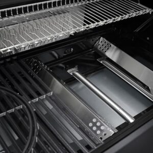 - Rundum sorglos - Ein Seitentisch mit Auffangbehälter, Deckel und schickem Schneidebrett aus Bambus sowie ein Seitenbrenner mit Keramik Sear-Zone (4 KW) ermöglichen das perfekte Steak zum Angeben