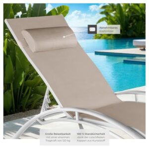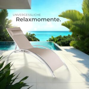 - GENIEßE ULTIMATIVEN LIEGEKOMFORT - Unsere Sonnenliege bietet dir mit einer 5-fach verstellbaren Rückenlehne und einem weichen, abnehmbaren Kopfpolster höchsten Liegekomfort. Ob als dein neuer Lieblings Relaxstuhl für den Garten oder als Balkonliege, sie ist die perfekte Ergänzung für entspannte Momente.