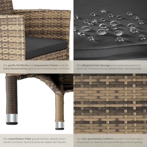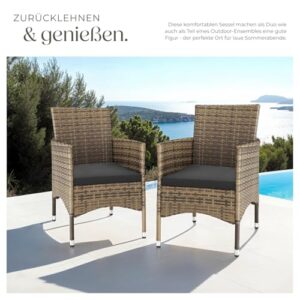 - MODERNES DESIGN TRIFFT KOMFORT: Erlebe mit unserem Gartensessel eine perfekte Kombination aus Stil und Bequemlichkeit. Hergestellt aus Polyrattan, bieten diese Gartenstühle mit ihren weichen, abnehmbaren Sitzpolstern in Beige und Grau nicht nur optische Highlights, sondern auch unvergleichlichen Sitzkomfort. Ob im Esszimmer oder als elegantes Element Deiner Outdoor Möbel – diese Polyrattan Sessel sind die ideale Wahl für jede Gelegenheit.