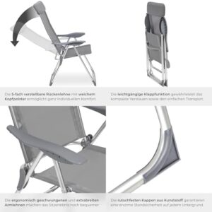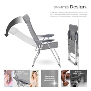 - KOMFORT UND DESIGN IN EINEM: Genieße höchsten Sitzkomfort dank der hohen Rückenlehne mit 5-facher Neigungsverstellung. Die bequemen Sitzpositionen, gepaart mit einem stilvollen Design, machen unsere Relaxsessel mit Liegefunktion zu einer idealen Wahl für jede Außeneinrichtung. Ob du gemütliches Terrassenmöbel zum Essen suchst, ein Nickerchen auf dem Liegestuhl planst oder ein bequem ein Buch auf Deinem Balkonstuhl lesen möchtest, unser Gartenstuhl klappbar ist immer eine gute Wahl.