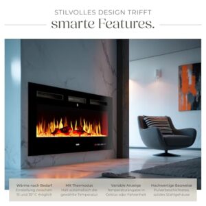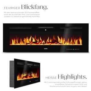 - WANDKAMIN ELEKTRISCH MIT 2 HEIZSTUFEN: Dieser elektrische Wandkamin bietet Dir eine stilvolle und praktische Heizlösung für Dein Zuhause. Mit 2 Heizstufen kannst Du die Temperatur flexibel anpassen und den Raum effektiv erwärmen. Ideal für kühle Tage oder gemütliche Abende. So kannst Du den Komfort eines Elektro Kamin genießen, der gleichzeitig mit einem modernen Feuer Effekt begeistert!