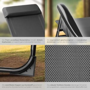 - LIEGEN, SITZEN, CHILLEN - KOMFORT DANK FLEXIBILITÄT: Unser Set Gartenstühle Hochlehner ist Dein perfekter Sommer Partner in Sachen Komfort. Ideal geeignet als Campingstühle, Gartenmöbel, als Balkonstuhl Set oder Terrassenmöbel. Die 7-fach verstellbare Rückenlehne sorgt für hohen Komfort in Positionen, während das klappbare Design eine einfache Handhabung ermöglicht. Toll für Angler, Outdoor-Fans und Gartenliebhaber, als Balkonmöbel, portable Gartensessel oder das ideale Campingmöbel.