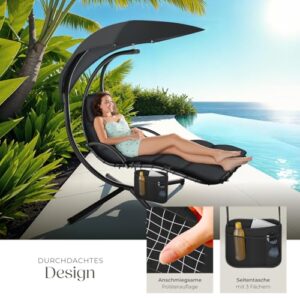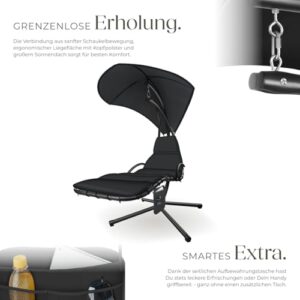 - SONNENSCHAUKEL IMMER BEQUEM: Egal, ob Du ein Buch liest, ein Nickerchen machst oder einfach nur die Wolken beobachtest, die ergonomisch geformte Liegefläche des Hängesessel mit Gestell sorgt immer für besten Komfort. Die weichen Polsterauflagen und das Kopfkissen unserer Schwebeliege outdoor machen jeden Moment auf dieser Relaxliege Garten zum puren Luxus.