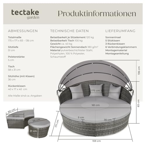 - RATTANMÖBEL WUNDERBAR WANDELBAR: Die funktionale Chillout Lounge von tectake zeichnet sich durch ihr ansprechendes Design, ihre Wandelbarkeit und ihren hohen Sitz- sowie Liegekomfort aus. Schnapp Dir Deine Freunde und verbringe entspannte Wohlfühlmomente auf der Rattanliege! Du möchtest nach einem langen Arbeitstag abschalten? Unsere Garten Liege lädt zum Relaxen ein und setzt gleichzeitig einen optischen Akzent in Deinem Zuhause.