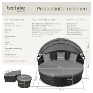- RATTANMÖBEL WUNDERBAR WANDELBAR: Die funktionale Chillout Lounge von tectake zeichnet sich durch ihr ansprechendes Design, ihre Wandelbarkeit und ihren hohen Sitz- sowie Liegekomfort aus. Schnapp Dir Deine Freunde und verbringe entspannte Wohlfühlmomente auf der Rattanliege! Du möchtest nach einem langen Arbeitstag abschalten? Unsere Garten Liege lädt zum Relaxen ein und setzt gleichzeitig einen optischen Akzent in Deinem Zuhause.