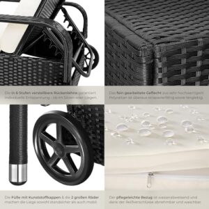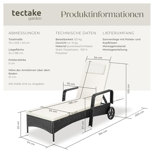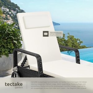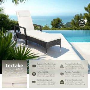 - WELLNESS ZUHAUSE: Die Sonnenliege mit Rollen von Tectake ist die perfekte Ergänzung für dein Rattan Gartenmöbel Set. Auf der Rattanliege bettest du dich so bequem wie in einem outdoor Bett - eine unbequeme Strandliege im eigenen Garten gehört jetzt der Vergangenheit an. Verwandele deinen Poolbereich, deine Terrasse, deinen Garten, Wintergarten oder deine Sauna in eine geschmackvoll gestalteten Wellnessoase. Nimm auf deiner neuen Balkon Liege Platz und verbringe entspannte Stunden!