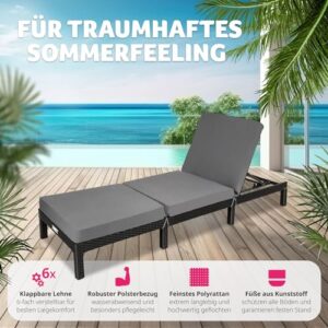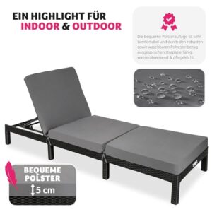 - ERSTKLASSIGER KOMFORT MIT STILVOLLEM DESIGN: Die Kombination aus bequemer Polsterauflage und einem ästhetisch ansprechenden Design macht unseren Liegestuhl zur ersten Wahl für Designliebhaber. Ideal für den Einsatz sowohl im Innen- als auch im Außenbereich, bietet die Rattanliege eine einladende Atmosphäre zum Entspannen. Ob auf dem Balkon, im Garten oder im Wohnzimmer, diese Schlafliege ist ein echter Hingucker und verspricht gleichzeitig höchsten Liegekomfort.