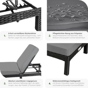 - PFLEGELEICHT UND FÜR JEDEN BEREICH GEEIGNET: Das Daybed Outdoor aus Polyrattan ist die perfekte Ergänzung für jeden Außen- oder Innenbereich. Egal ob auf der Terrasse, am Pool oder im Garten, die Sonnenliege Rattan bietet nicht nur hervorragenden Komfort, sondern auch eine attraktive Optik. Die leichte Reinigung und die Widerstandsfähigkeit gegenüber Wettereinflüssen machen die Camping Liege zu einem praktischen und stilvollen Möbelstück für jede Gelegenheit.