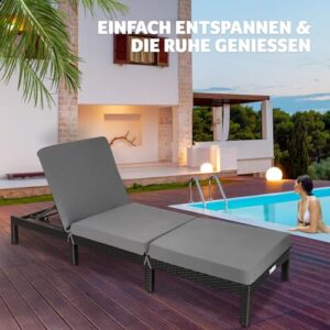 - VIELSEITIG VERSTELLBAR UND KOMFORTABEL: Unsere Balkonliege bietet mit ihrer 6-fach höhenverstellbaren Rückenlehne ultimativen Komfort und Flexibilität. Egal, ob du ein Buch lesen, die Sonne genießen oder einfach nur entspannen möchtest, diese Relaxliege lässt sich perfekt an deine Bedürfnisse anpassen. Das elegante Design der Strandliege fügt sich harmonisch in jede Außendekoration ein und die robuste Konstruktion gewährleistet, dass du viele Sommer genießen kannst.